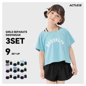 水着 女の子 セパレート 女子 女児 キッズ ジュニア 子供 子ども こども セパレート水着 上下セット 上下 セット 3点セット 半袖 110 120 130 140 150 160