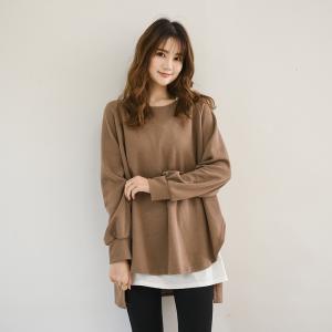 トップス レディース ロングTシャツ ロンT カットソー 長袖 無地 シンプル トレーナー ミディアム ゆったり アイボリ 黒 グリーン ブラウン 秋 冬