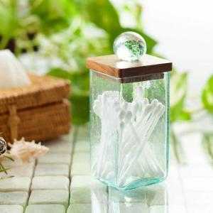 アジアン雑貨 コットンスティックケース ガラス おしゃれ 洗面所 メイク アジアン 雑貨 チーク
