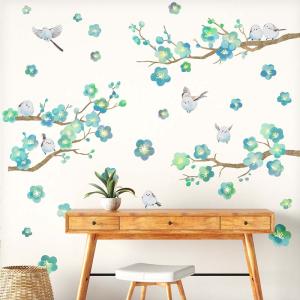 ウォールステッカー シマエナガ 梅 鳥 貼って はがせる 壁 シール 壁紙 植物 緑 花 グリーン ナチュラル 木 葉っぱ 草 梅 春 内装 季節装飾 受注印刷