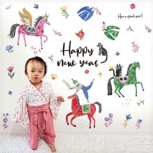 ウォールステッカー 和柄 【初春】 貼って はがせる 壁 シール 壁紙 ステッカー 飾り 北欧 木 葉 草 花 観葉植物 植物 おしゃれ かわいい カラフル 和 和柄