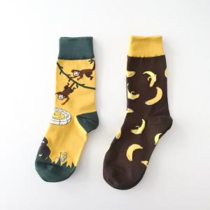 靴下 モンキー バナナ お猿さん柄 ソックス レディース 総柄 かわいい おしゃれ 2足セット