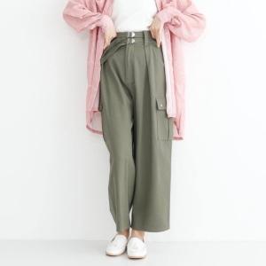 merlot メルロー ダブル ベルト カーゴ ストレート パンツ 3716 レディース ナチュラル カーキ ベージュ