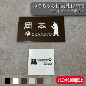 ねこちゃんのシルエット付き 表札&看板 2行用【猫シルエット100種以上】 【板サイズ6種】 オリジナルプレート作成/表札プレート