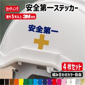 安全第一ステッカー 横5cm 4枚セット 文字カラーと十字のカラーを変更可能 カッティング 現場 工事 シール 工事用ヘルメット
