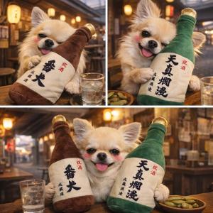 日本酒 番犬 天真爛漫 犬のぬいぐるみ おもちゃ 犬 子犬 ぬいぐるみ 鳴る 可愛い 大型犬 中型犬 酒 お祝い 楽しい