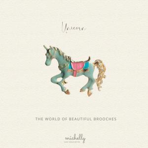ブローチ ユニコーン ミント オレンジ ネイビー ゴールド 馬 モチーフ アクセサリー おしゃれ かわいい 大人