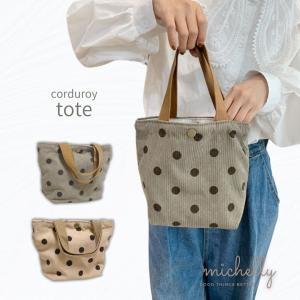 トートバッグ コーデュロイ ミニ 小さめ ドット グレー ベージュ 軽量 軽い レディース サブ