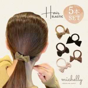 ヘアゴム リボン 5本セット ヘアアレンジ まとめ髪 伸びる 丈夫 ベージュ ブラウン ヘアアクセサリー