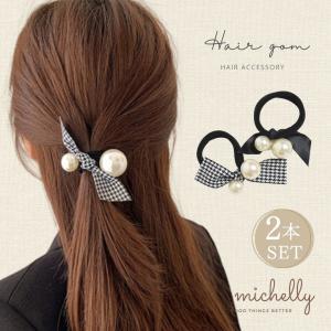 ヘアゴム パール リボン 千鳥格子 ヘアアレンジ 大人 まとめ髪 シンプル 黒 アクセサリー きれいめ
