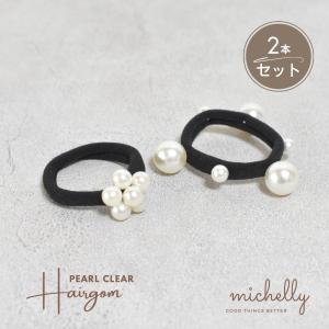 ヘアゴム パール 2本セット 上品 きれいめ ボール ヘアアレンジ 大人 まとめ髪 シンプル 黒