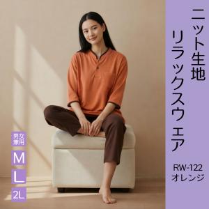 【1枚〜】【RW-122 オレンジ】ニット生地 リラックスウェア【オレンジ*ダークブラウン】【男女兼用】【対応身長 150〜180cm】【館内着】【ルームウェア】