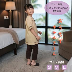 【1枚〜】ニット生地 子供用リラックスウェア RW-121(ベージュ*ダークブラウン)【館内着】【男女兼用】【3サイズ】【旅館】【ホテル】【温泉】