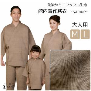 【1枚~】【WA-101】先染めミニワッフル生地 館内着作務衣 【ベージュ】【温泉施設】【リゾート施設】【リラクゼーション施設】【男女兼用】【業務用】