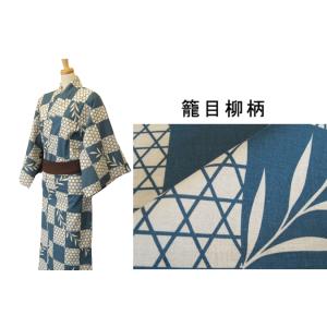 【ゆかた単品】【和みシリーズ /Y-009 籠目柳柄】【3サイズ展開:中 / 大 / 特大 】【男女兼用】【帯なし】