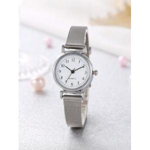 1個 白 レディース シンプル合金クォーツブレスレット腕時計、洗練されたラウンドダイヤル、ファッショナブルな白い針、カジュアルでエレガント、高品質で手頃な