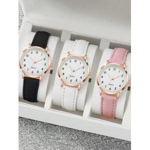 1個 可愛らしい丸型ポインター クオーツ腕時計、発光アナログマットカラフルPUレザーストラップ、レディース デイリー使用、母の日のお母さんへ、父の日のお父さ