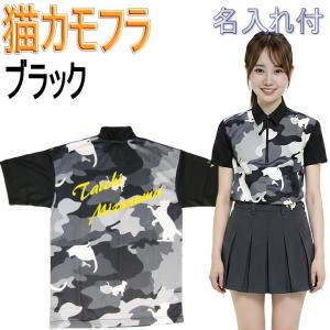 猫カモフラージュ 名入れ付き ボウリングウェア ブラック メンズ レディース MC2020-1