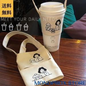 カップスリーブ カップホルダー カップカバー ストラップ付 手提げ 持ち運び カップコーヒー ミルクティー 底付き 底なし 可愛い おしゃれ