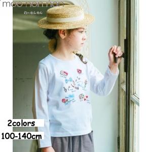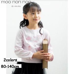 むーのんのん 子供服 女の子 Tシャツ 秋冬 長袖 普段着 通学着 綿100% ドレス ロゴ 刺繍 バレエ シューズ リボン ピンク ネイビー moononnon
