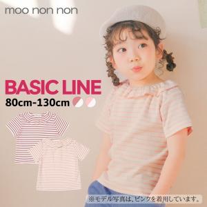 子供服 女の子 Tシャツ 半袖 普段着 通学 通園 ストライプ柄リボン付き音符プリント重ね着風Aライン ネイビー オフホワイト パープル むーのんのん moononnon