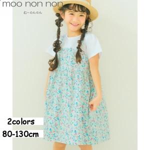 むーのんのん 子供服 女の子 ワンピース ジャンパースカート 夏服 半袖 こども服 小学生 ベビー 綿100% 春服 花 いちご 重ね着風 ピンク ブルー moononnon