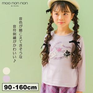 むーのんのん 子供服 女の子 Tシャツ 秋冬 長袖 子ども服 ベビー キッズ ジュニア ピアノ 音符 刺繍 リボン つき カットソー ロンT moononnon