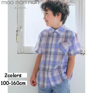 むーのんのん 子供服 男の子 Tシャツ 夏服 半袖 小学生 通学着 普段着 こども服 キッズ服 春服 秋服 チェック柄 綿100% ホワイト×ブラック ブルー moononnon