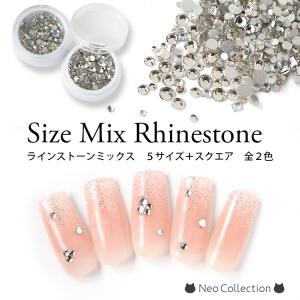 ラインストーンミックス 5サイズ+スクエア 全2色 クリスタル オーロラ サイズミックス ラインストーン クリアストーン アクリル ネイルパーツ デコ ネイル用品