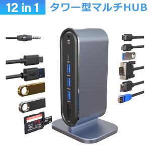 USB C タワー型 ハブ 12ポート ドッキングステーション 4K HDMI VGA LAN USB3 PD充電 対応 hub USB-C 2画面同時出力 有線LAN SD microSD カードリーダー
