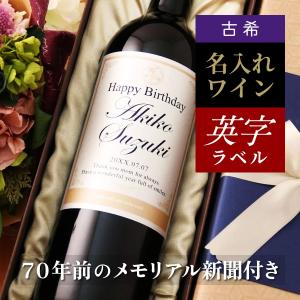 古希祝い 誕生日 プレゼント ギフト 贈り物 父 母 男性 女性 両親 上司 名入れ 70年前の新聞付き 「Days」英字ラベル ワイン(赤or白) 750ml