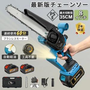 チェーンソー 充電式 電動 8インチ 高枝切り 有効切断長350mm ブラシモーター 自動給油 LEDバッテリー残量表示 軽量 ポータブル 電動ノコギリ ハンディ 家庭用