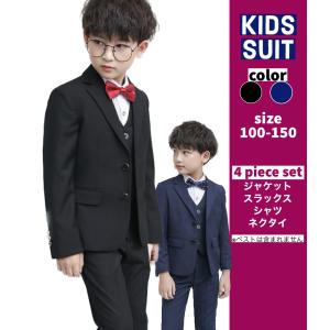 在庫限り キッズスーツ 男の子 黒 ネイビー フォーマル スーツ 上下セット 4点セット おしゃれ 七五三 入学式 卒業式 結婚式