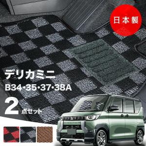 日本製 三菱 デリカミニ フロアマット B34A/B35A/B37A/B38A 対応 2点セット 純正タイプ チェック柄 汚れ防止 カーマット カーペット