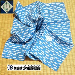 大判ハンカチ 小魚 メダカ てぬぐい生地 マスク カバー 通気性 速乾 風呂敷 弁当包み 特岡 晒木綿 梨園染 注染 戸田屋商店 贈り物 趣味 ネコポス発送
