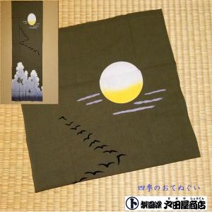 てぬぐい 月に雁 満月 渡鳥 冬 訪れ 四季 ハンカチ タオル 晒もめん 梨園染 戸田屋商店 注染 贈り物 インテリア 趣味 ネコポス送料無料