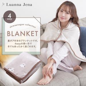 暖かフランネル素材 シマエナガ ブランケット 4way ひざ掛け 裏ボア 巻きスカート ポンチョ ボレロ 洗える プレゼント ギフト あったか かわいい Luanna Jena
