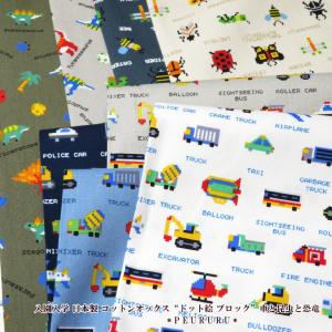 生地 入園入学 コットンオックス“ドット絵 ブロック車柄(656))日本製 レッスンバッグ男の子 手作り レシピ 体操服袋 くつ袋