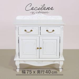 キャビネット 幅75cm シャビーシック フレンチ マホガ二ー材 完成品 ホワイト アンティーク調 白家具 ヨーロッパ調 収納 天然木 引き出し 猫脚