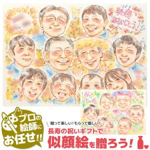 米寿 お祝い 似顔絵 プレゼント 米寿のお祝い 米寿祝い 男性 女性 祖父 祖母 父 母 両親 喜寿 還暦 古希 卒寿 傘寿 百寿 名入れ 誕生日 「ほんわかウキウキ画」