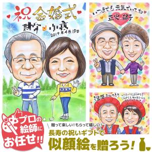 似顔絵ポエム プレゼント 写真から作成 名入れ イラスト 還暦祝い 長寿祝い