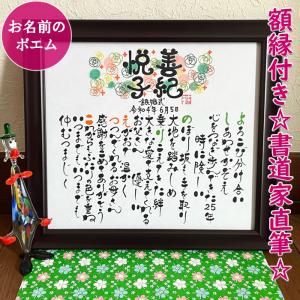 出産祝い プレゼント 男 女 命名書 命名紙 お名前 おしゃれ 名前詩 ネームイン 還暦祝い 名前 ポエム オーダー)「笑顔の筆文字ネームポエム(木製フレーム)」