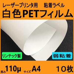 白色PETフィルム ラベル 弱粘着再剥離品 リンテック製 A4 10枚 レーザープリンタ対応 クリックポスト全国無料配送【在庫品】