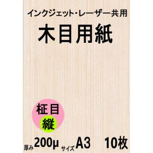 インクジェット・レーザー共用 木目用紙 柾目縦目 A3 10枚 クリックポスト全国無料配送【在庫品】