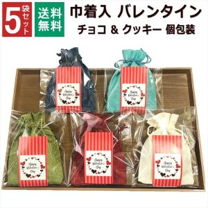 バレンタイン 小分け 2026 チョコ クッキー 巾着袋 義理チョコ オシャレ かわいい 義理 プチギフト 個包装 お配り 子供 チョコレート 限定 男性 5袋セット