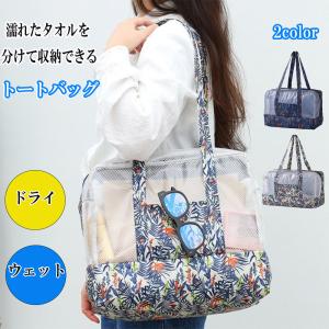 トートバッグ ドライとウェットで分けて収納 メッシュ サウナ スパ 温泉 銭湯 プール ビーチ ジム スポーツ 旅行