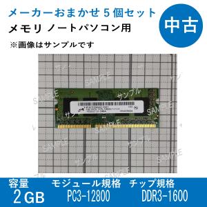 【中古メモリ ノートパソコン用】メモリおまかせ5個セット DDR3L-1600(PC3L-12800S)2GB