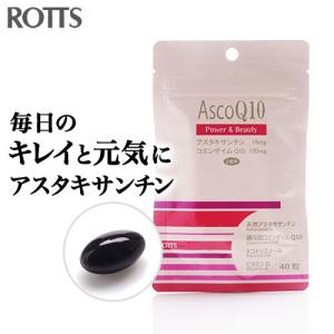 AscoQ10(40粒)天然アスタキサンチン+還元型コエンザイムQ10 CoQ10 トコトリエノール ビタミンD アスコキューテン ROTTS ロッツ