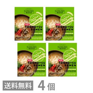 グルテンフリー とんこつ風ラーメン スープ付 113g ×4 送料無料 GFM インスタント 豚骨 らーめん 小麦粉不使用 ベジタリアン 生麺 米粉麺 国産
