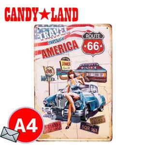 ブリキ看板 ダイカット ルート66 RT66 サインプレート アメリカ看板 ガレージ 世田谷ベース USA MP19006